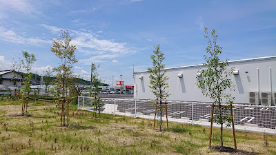 前述のように、2020年7月下旬の段階では建物や駐車場はほとんど完成しているようで、青と白の真新しい看板や建物が国道を走っていても目立っています。